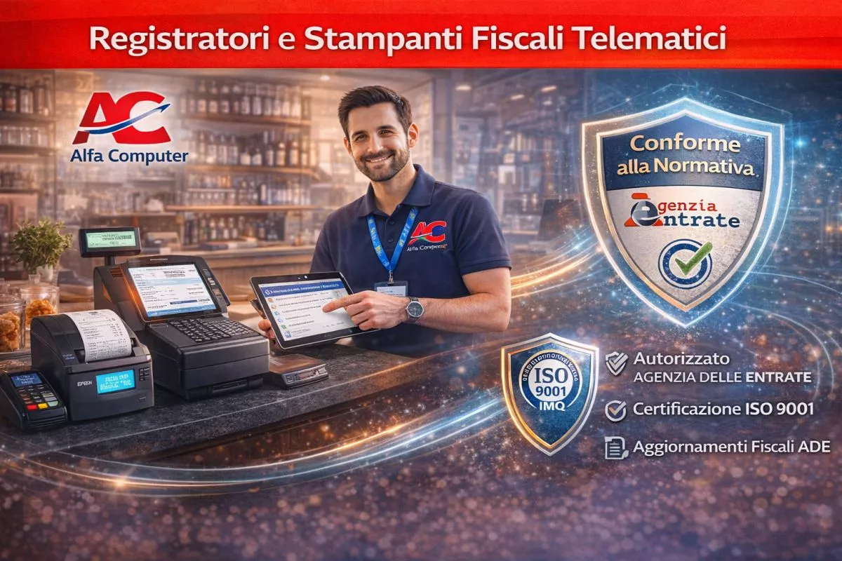 Alfa Computer è specializzata nella fornitura e manutenzione di registratori e stampanti di cassa telematiche certificate ISO IMQ 9001:2015, autorizzate dall’Agenzia delle Entrate come da normativa vigente.