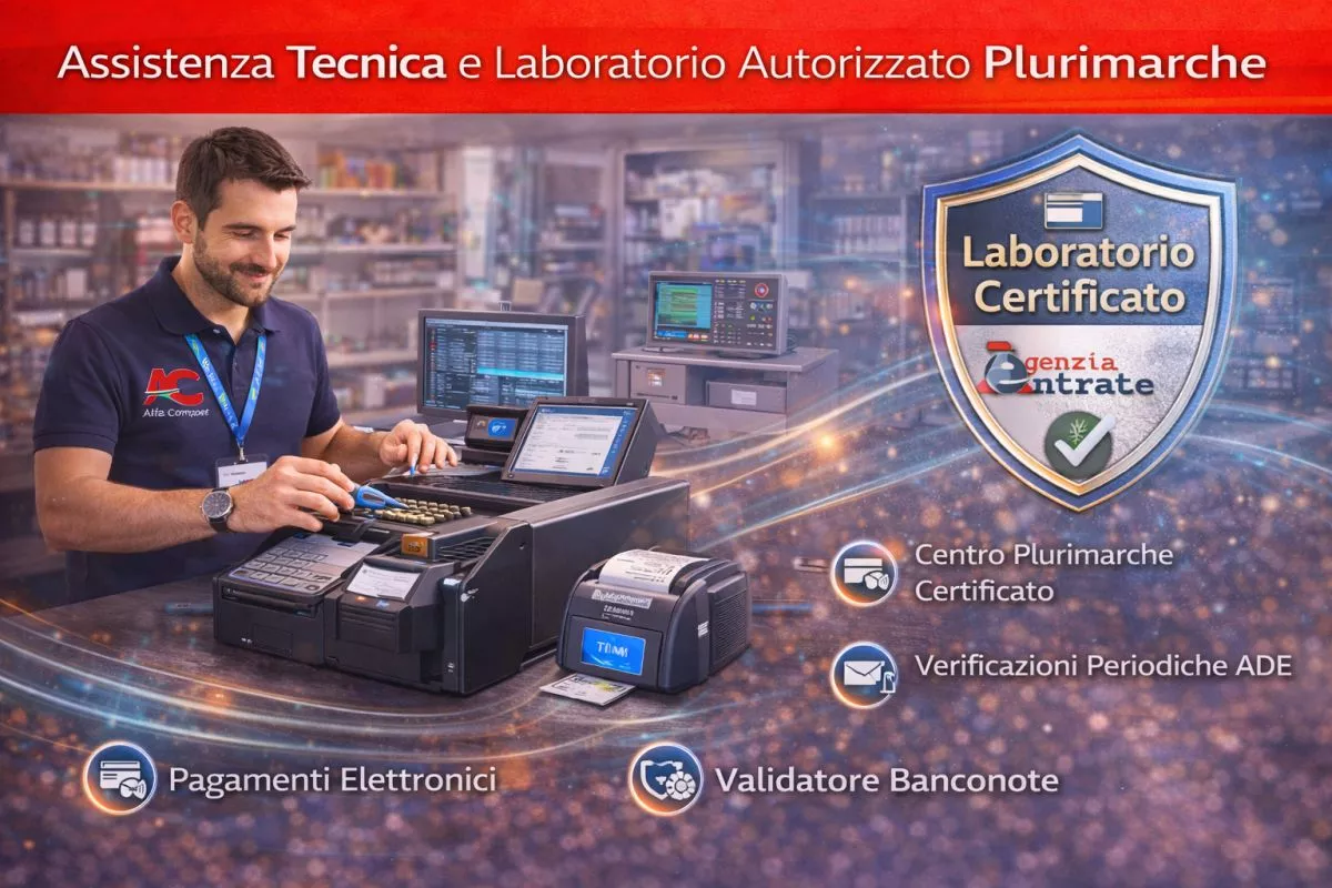 Disponiamo di un laboratorio tecnico plurimarche autorizzato per la manutenzione, gli aggiornamenti e le verificazioni periodiche dei registratori telematici (ADE), eseguite da personale certificato.