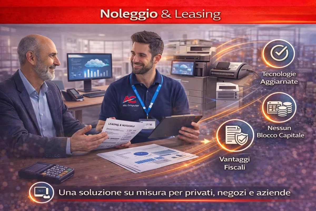 Il noleggio ti consente di avere sempre tecnologie aggiornate senza immobilizzare capitali, con la possibilità di rinnovare o riscattare i beni a fine contratto.