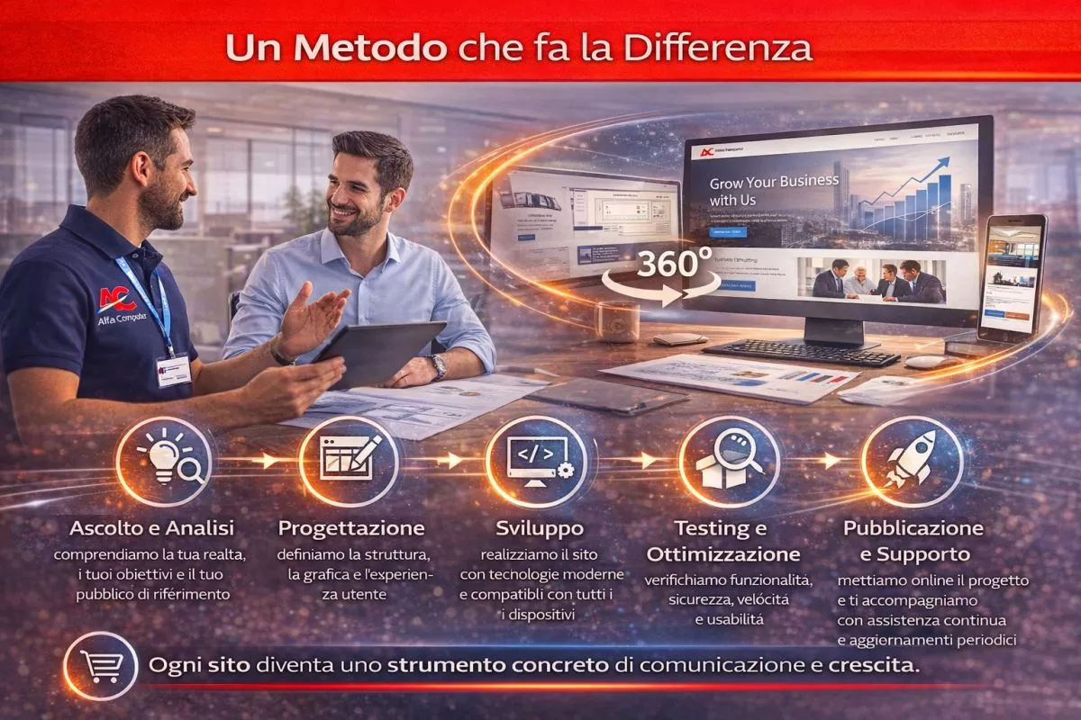 Ogni progetto web firmato Alfa Computer segue un processo strutturato e trasparente: